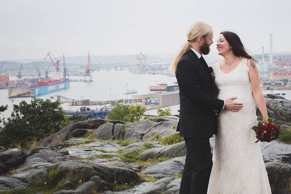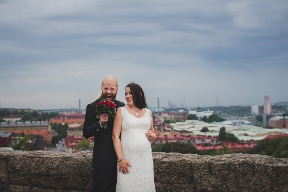 Nina & Gustaf bor i Majorna precis som jag. Faktum är att dom till och med bor i samma hus som jag bott i tidigare. Dom gifte sig för en dryg vecka sen i Masthuggskyrkan i Göteborg. Det är kyrkan med allra bäst utsikt (man ser ner över Majorna bland annat). Utsikten är så fin att det till och med kom en busslast med Franska turister och avbröt oss i vår fotografering.